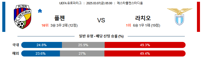 플젠 대 라치오 UEFA유로파리그 03월07일 맞대결 생중계, 스포츠중계, 스포츠분석