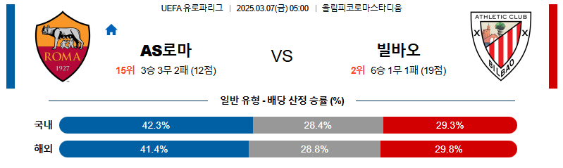 로마 대 빌바오 UEFA유로파리그 03월07일 맞대결 생중계, 스포츠중계, 스포츠분석