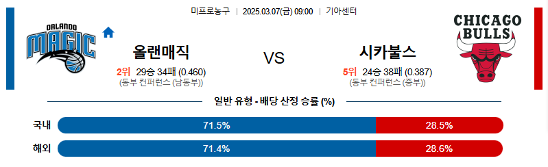 올랜도 대 시카고 NBA 03월07일 맞대결 생중계, 스포츠중계, 스포츠분석
