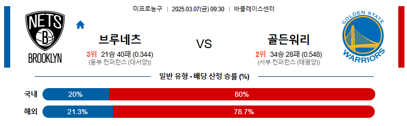 브루클린 대 골든스테이트 NBA 03월07일 맞대결 생중계, 스포츠중계, 스포츠분석