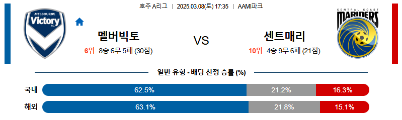 멜버른빅토리 대 센트럴코스트 호주A리그 03월08일 맞대결 생중계, 스포츠중계, 스포츠분석