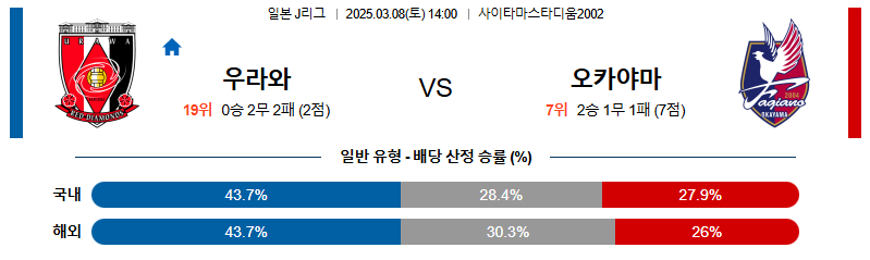 우라와 대 오카야마 J리그1 03월08일 맞대결 생중계, 스포츠중계, 스포츠분석