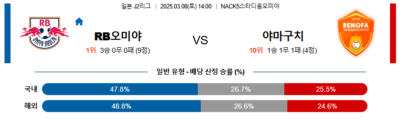 오미야 대 야마구치 J리그2 03월08일 맞대결 생중계, 스포츠중계, 스포츠분석