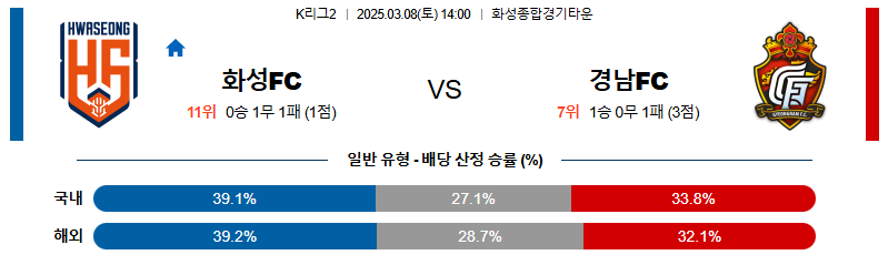 화성 (K리그2 신생팀 / 최근 5경기 승패: 무)