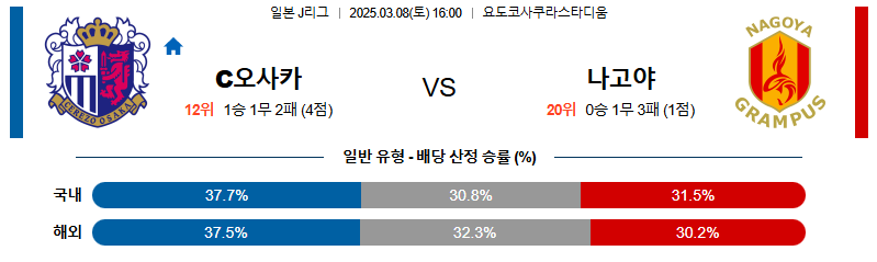세레소오사카 대 나고야 J리그1 03월08일 맞대결 생중계, 스포츠중계, 스포츠분석