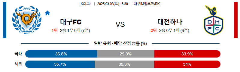 대구 대 대전 K리그1 03월08일 맞대결 생중계, 스포츠중계, 스포츠분석