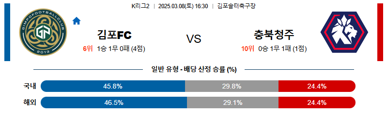 김포 대 충북청주 K리그2 03월08일 맞대결 생중계, 스포츠중계, 스포츠분석
