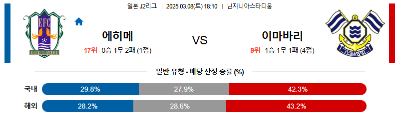 에히메 대 이마바리 J리그2 03월08일 맞대결 생중계, 스포츠중계, 스포츠분석