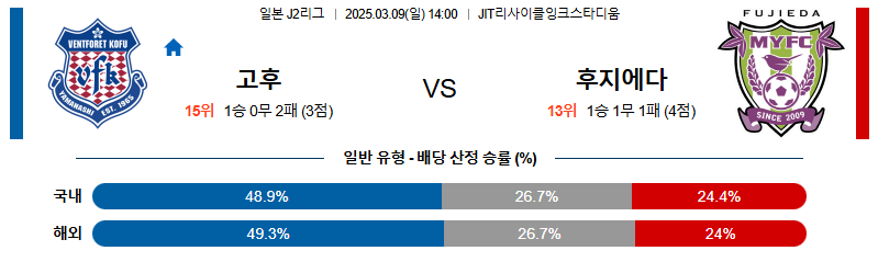 반포레고후 대 후지에다 J리그2 03월09일 맞대결 생중계, 스포츠중계, 스포츠분석