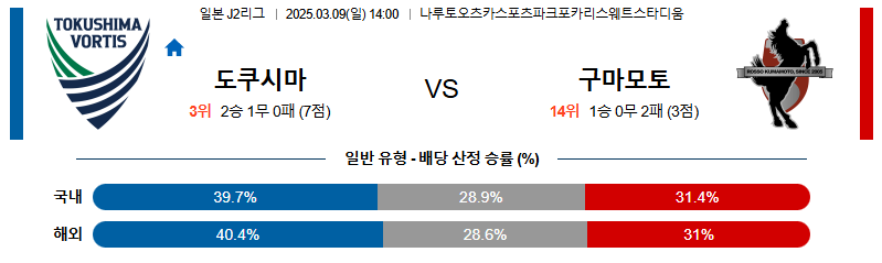 도쿠시마 대 구마모토 J리그2 03월09일 맞대결 생중계, 스포츠중계, 스포츠분석