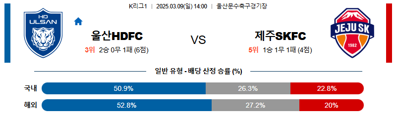 울산 대 제주 K리그1 03월09일 맞대결 생중계, 스포츠중계, 스포츠분석