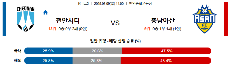 천안시청 대 충남아산 K리그2 03월09일 맞대결 생중계, 스포츠중계, 스포츠분석