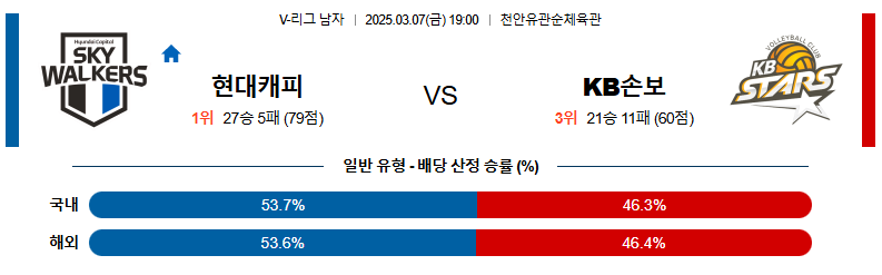 현대캐피탈 대 KB손해보험 V리그 03월07일 맞대결 생중계, 스포츠중계, 스포츠분석