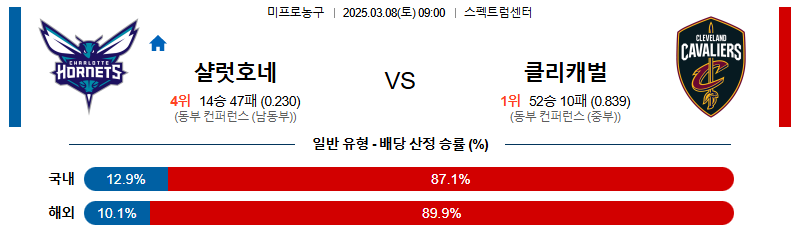 샬럿 대 클리블랜드 NBA 03월08일 맞대결 생중계, 스포츠중계, 스포츠분석