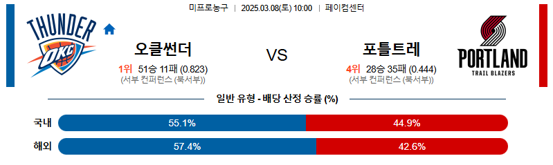 오클라호마 대 포틀랜드 NBA 03월08일 맞대결 생중계, 스포츠중계, 스포츠분석