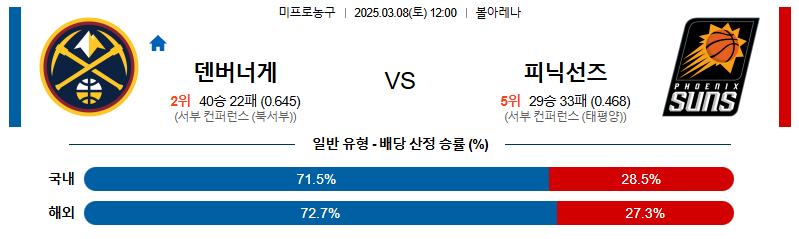 덴버 대 피닉스 NBA 03월08일 맞대결 생중계, 스포츠중계, 스포츠분석