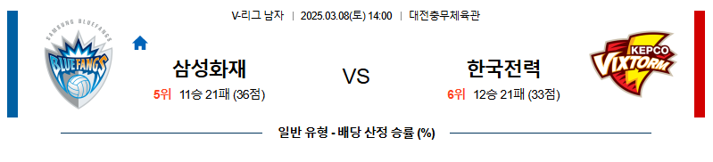 삼성화재 대 한국전력 V리그 03월08일 맞대결 생중계, 스포츠중계, 스포츠분석