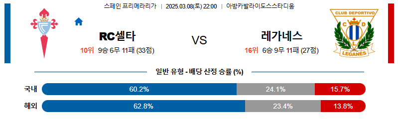 셀타비고 대 레가네스 라리가 03월08일 맞대결 생중계, 스포츠중계, 스포츠분석
