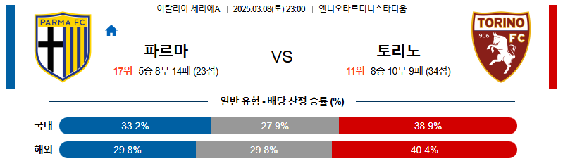 파르마 대 토리노 세리에A 03월08일 맞대결 생중계, 스포츠중계, 스포츠분석