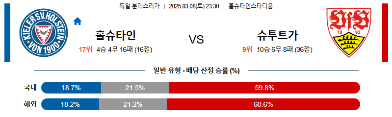 홀슈타인킬 대 슈투트가르트 분데스리가 03월08일 맞대결 생중계, 스포츠중계, 스포츠분석