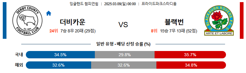 더비 대 블랙번 잉글랜드챔피언쉽 03월09일 맞대결 생중계, 스포츠중계, 스포츠분석