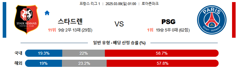렌 대 파리생제르망 리그앙 03월09일 맞대결 생중계, 스포츠중계, 스포츠분석