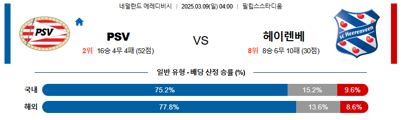 PSV 대 헤이렌베인 에레디비지에 03월09일 맞대결 생중계, 스포츠중계, 스포츠분석