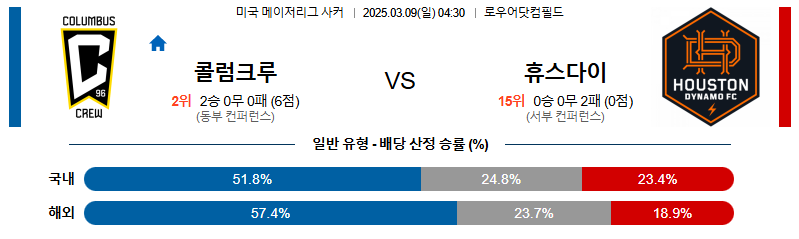 콜럼버스 대 휴스턴 메이저리그사커 03월09일 맞대결 생중계, 스포츠중계, 스포츠분석