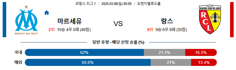 마르세유 대 랑스 리그앙 03월09일 맞대결 생중계, 스포츠중계, 스포츠분석