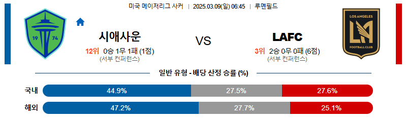 시애틀 대 LAFC 메이저리그사커 03월09일 맞대결 생중계, 스포츠중계, 스포츠분석