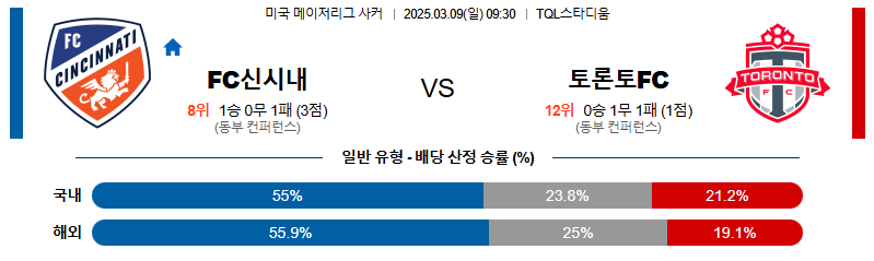신시내티 대 토론토 메이저리그사커 03월09일 맞대결 생중계, 스포츠중계, 스포츠분석