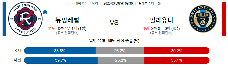 뉴잉글랜드 대 필라델피아 메이저리그사커 03월09일 맞대결 생중계, 스포츠중계, 스포츠분석