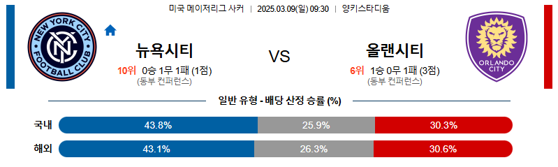 뉴욕시티 대 올랜도 메이저리그사커 03월09일 맞대결 생중계, 스포츠중계, 스포츠분석