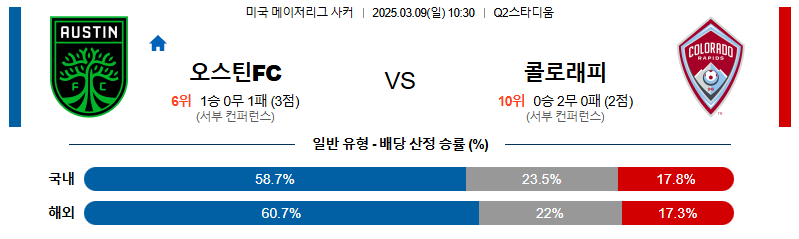 오스틴 대 콜로라도 메이저리그사커 03월09일 맞대결 생중계, 스포츠중계, 스포츠분석