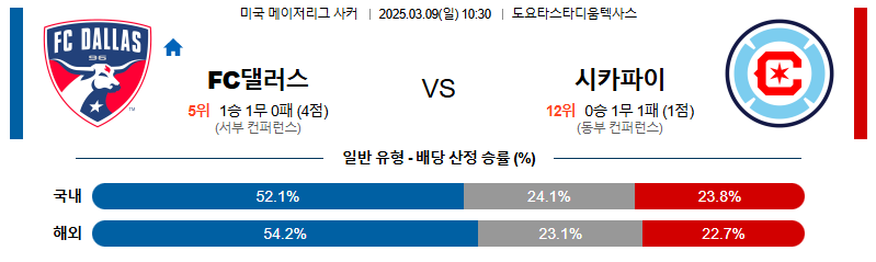 댈러스 대 시카고 메이저리그사커 03월09일 맞대결 생중계, 스포츠중계, 스포츠분석