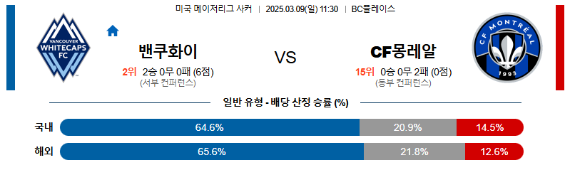 밴쿠버 대 몬트리올 메이저리그사커 03월09일 맞대결 생중계, 스포츠중계, 스포츠분석