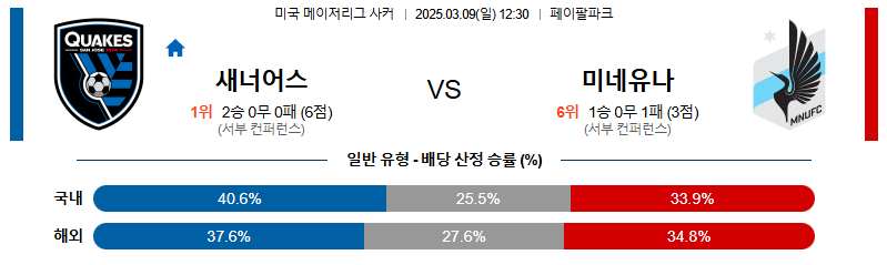 산호세 대 미네소타 메이저리그사커 03월09일 맞대결 생중계, 스포츠중계, 스포츠분석