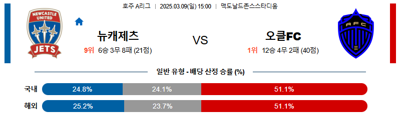 뉴캐슬제츠 대 오클랜드 호주A리그 03월09일 맞대결 생중계, 스포츠중계, 스포츠분석