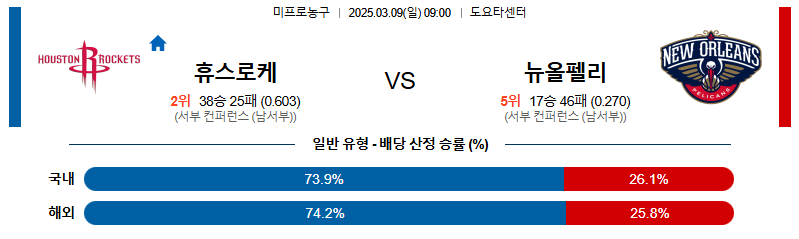휴스턴 대 뉴올리언스 NBA 03월09일 맞대결 생중계, 스포츠중계, 스포츠분석