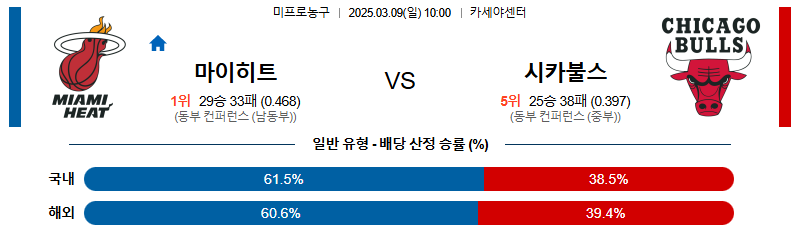 마이애미 대 시카고 NBA 03월09일 맞대결 생중계, 스포츠중계, 스포츠분석
