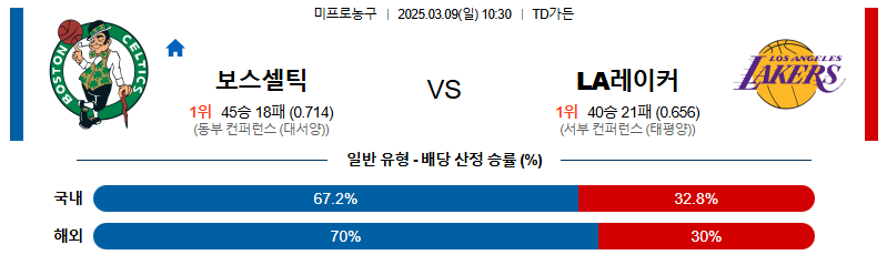 보스턴 대 LA레이커스 NBA 03월09일 맞대결 생중계, 스포츠중계, 스포츠분석