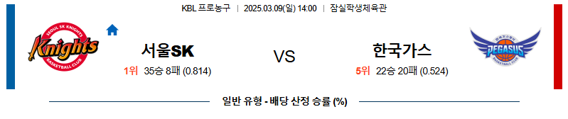 서울SK 대 대구한국가스 KBL 03월09일 맞대결 생중계, 스포츠중계, 스포츠분석