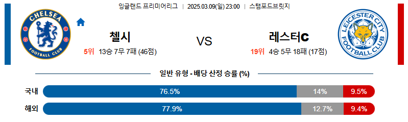 첼시 대 레스터 프리미어리그 03월09일 맞대결 생중계, 스포츠중계, 스포츠분석