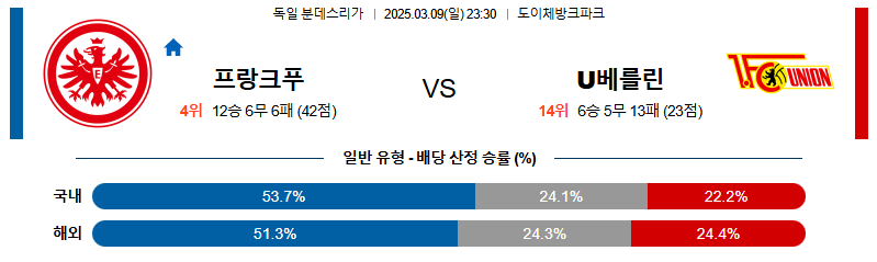 프랑크푸르트 대 유니온베를린 분데스리가 03월09일 맞대결 생중계, 스포츠중계, 스포츠분석
