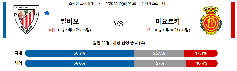 아틀레틱빌바오 대 마요르카 라리가 03월10일 맞대결 생중계, 스포츠중계, 스포츠분석