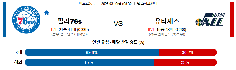 필라델피아 대 유타 NBA 03월10일 맞대결 생중계, 스포츠중계, 스포츠분석