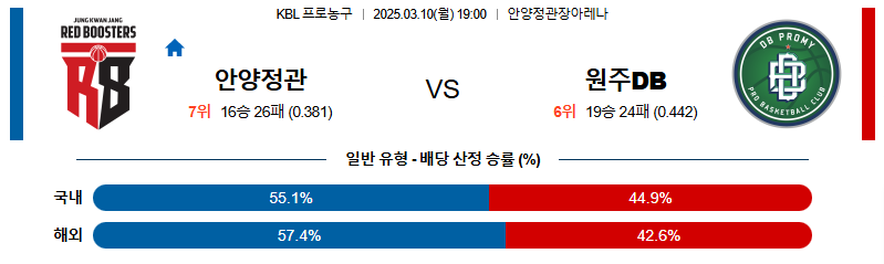 안양정관장 대 원주DB KBL 03월10일 맞대결 생중계, 스포츠중계, 스포츠분석