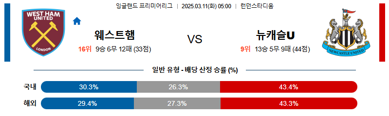 웨스트햄 대 뉴캐슬 프리미어리그 03월11일 맞대결 생중계, 스포츠중계, 스포츠분석