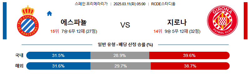 에스파뇰 대 지로나 라리가 03월11일 맞대결 생중계, 스포츠중계, 스포츠분석