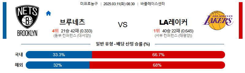 브루클린 대 LA레이커스 NBA 03월11일 맞대결 생중계, 스포츠중계, 스포츠분석